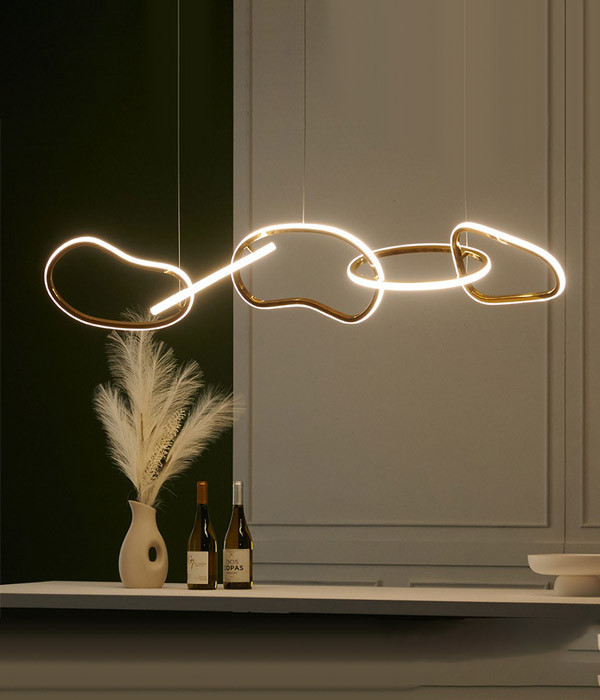 비정형 타원들이 고리 형태로 이어진 은은한 빛